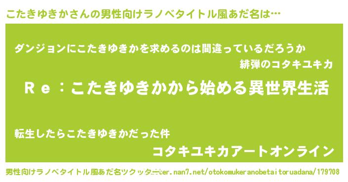| 女子向けラノベタイトル風あだ名 | 『闇のこたきゆきか』 |