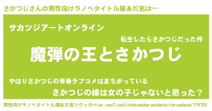 | 意味不明あだ名 | 『住所不定無職さかつじ(43歳)』 |