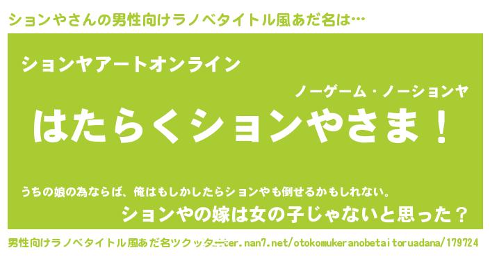 | 肩書あだ名 | 『ションやディレクター』『ションや店長』 |