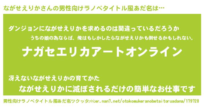 | ヒーロー風カッコイイあだ名 | 『スーパーナガセエリカ』『魔戒騎士ナガ』 |
