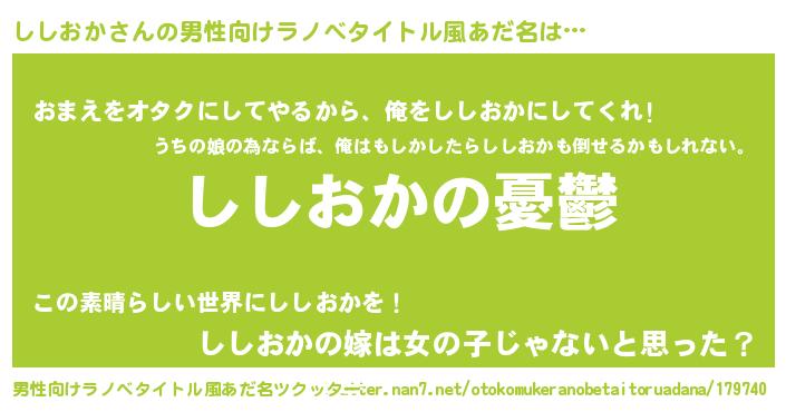 ししおかさんの男性向けラノベタイトル風あだ名をツクッター!