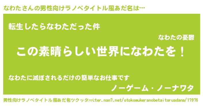 | ポケモン風あだ名 | 『ナーワイ』『ナワキング』 |
