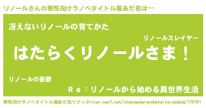 | ヒーロー風カッコイイあだ名 | 『超時空戦士リノール』『暗黒騎士リノ』 |
