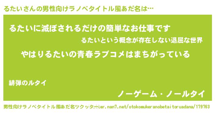 | 女子向けラノベタイトル風あだ名 | 『るたい伯爵の花嫁』『るたい恋絵巻』 |