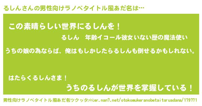| 女子向けラノベタイトル風あだ名 | 『るしんの婚約者』 |