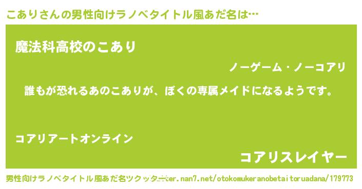 | ヘコむあだ名 | 『こあり(震え声)』『こあにー』 |