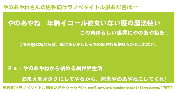 | 伝説のあだ名 | 『最古の陰陽師やのあやね』 |