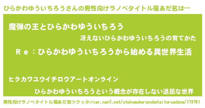 | 女子向けラノベタイトル風あだ名 | 『ひらかわゆういちろうストレイドッグス』 |