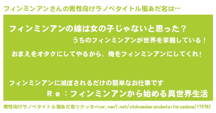 | 女子向けラノベタイトル風あだ名 | 『フィンミンアン夫妻のなれそめ』 |