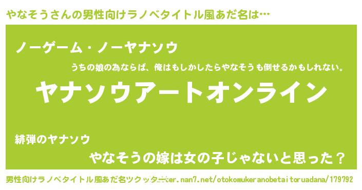 | 胡散臭い通販商品みたいなあだ名 | 『億万長者になれる霊験あらたかなお札…その名も「やなそう」』 |
