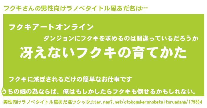 | 胡散臭い通販商品みたいなあだ名 | 『モテモテ間違いなしブレスレット…その名も「フクキ」』 |