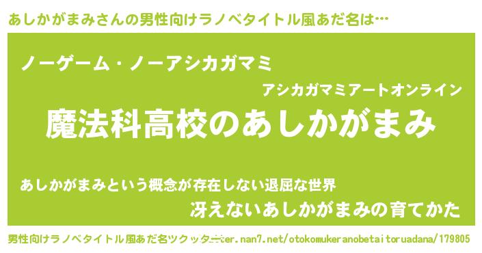 | 女子向けラノベタイトル風あだ名 | 『あしかがまみアンティーク』 |