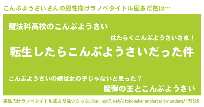 | 女子向けラノベタイトル風あだ名 | 『婚約破棄系悪役こんぶようさいに転生したので、保身に走りました。』 |