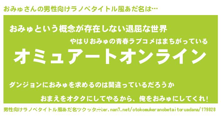 | 伝説のあだ名 | 『封印されし竜騎士おみゅ』 |