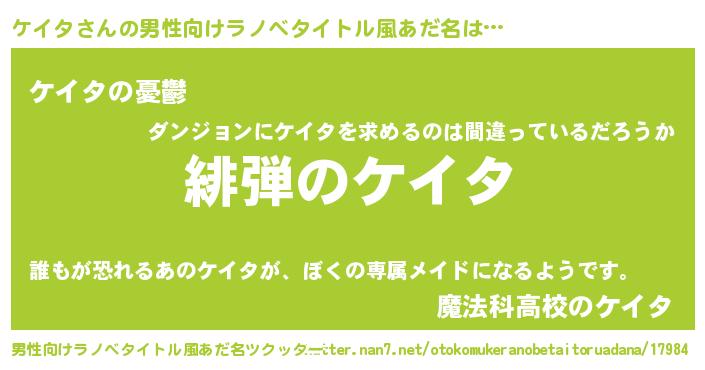 | 意味不明あだ名 | 『ペロリンケイタ』『自称ケイタ』 |