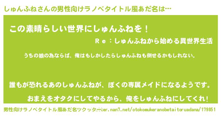 | 女子向けラノベタイトル風あだ名 | 『しゅんふねの婚約者』 |