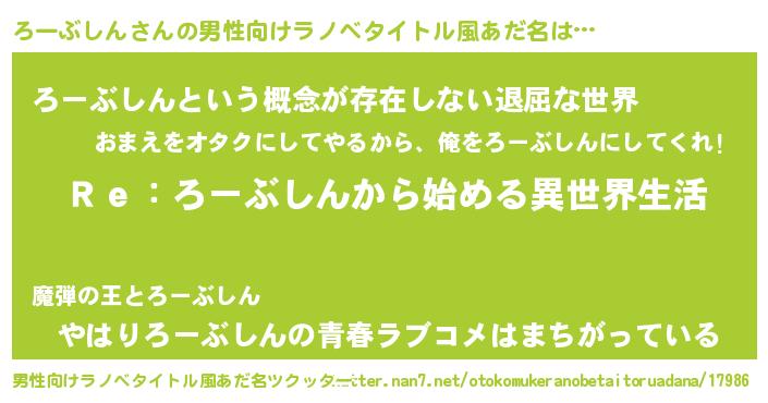 | 意味不明あだ名 | 『自称ろーぶしん』『永久保存ろーぶしん』 |