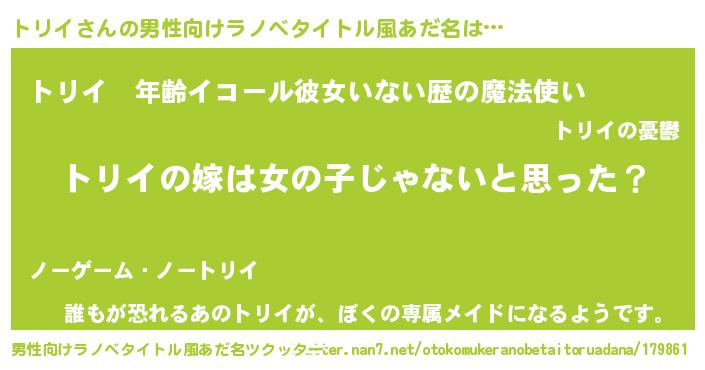 | ヘコむあだ名 | 『トリを』『トリイ(震え声)』 |