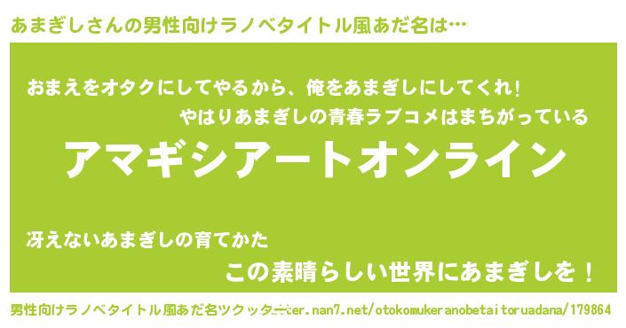 | 胡散臭い通販商品みたいなあだ名 | 『モテモテ間違いなし霊験あらたかなお札…その名も「あまぎし」』 |