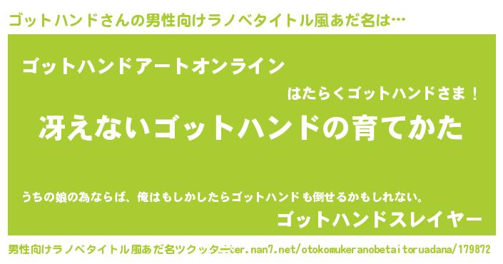 | ヒーロー風カッコイイあだ名 | 『スーパーゴットハンド』『暗黒騎士ゴッ』 |