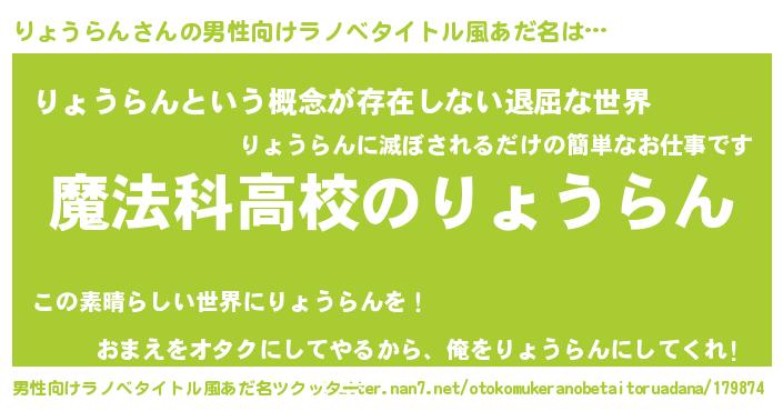 | 意味不明あだ名 | 『自称りょうらん』『永久保存りょうらん』 |