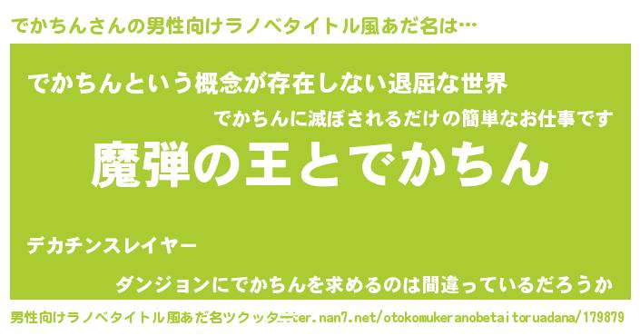 | 意味不明あだ名 | 『住所不定無職でかちん(65歳)』 |