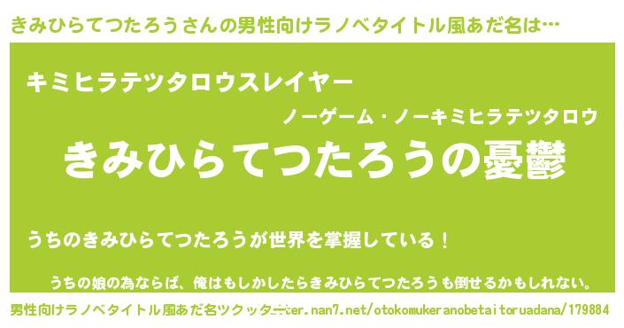 | 女子向けラノベタイトル風あだ名 | 『(仮)きみひらてつたろうのやんごとなき事情』 |