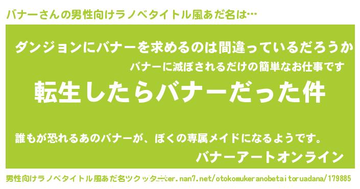 | 女子向けラノベタイトル風あだ名 | 『バナーの玉の輿計画!』 |