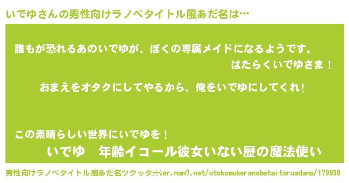 | 女子向けラノベタイトル風あだ名 | 『いでゆ夫妻のなれそめ』 |