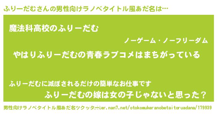 | 女子向けラノベタイトル風あだ名 | 『ふりーだむ伯爵の花嫁』 |