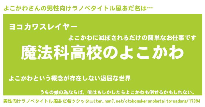 | 女子向けラノベタイトル風あだ名 | 『よこかわなんてお断りですっ。』 |