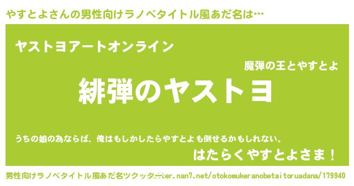| 伝説のあだ名 | 『伝説のスナイパーやすとよ』 |
