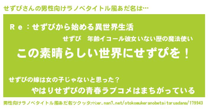 | 胡散臭い通販商品みたいなあだ名 | 『あなたにだけ特別に提供する限定10本のレアな日本酒…その名も「せずぴ」』 |