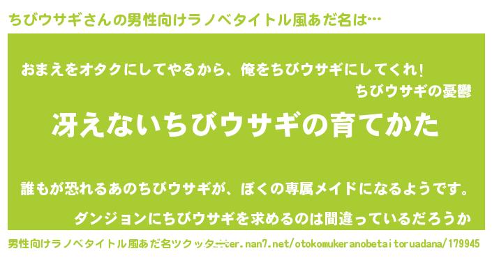 | ヒーロー風カッコイイあだ名 | 『慈愛の使者ちびウサギ』『黄金騎士チビ』 |