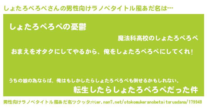 | 女子向けラノベタイトル風あだ名 | 『しょたろぺろぺ夫妻のなれそめ』 |