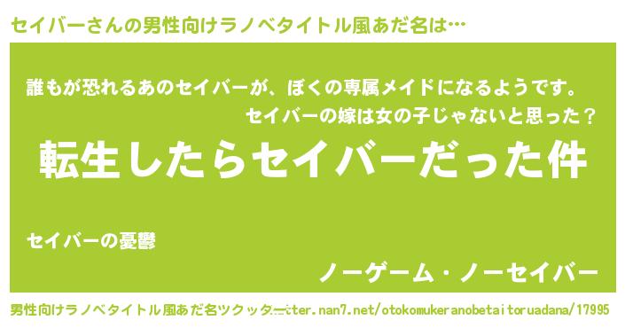 | 胡散臭い通販商品みたいなあだ名 | 『来世でも幸せになれる水素水…その名も「セイバー」』 |