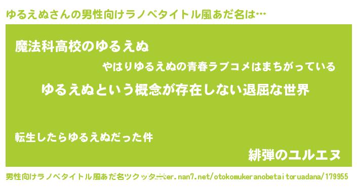 | ヒーロー風カッコイイあだ名 | 『ネオユルエヌ』『サイバー戦士ユルエヌ』 |