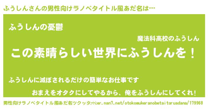 | 女子向けラノベタイトル風あだ名 | 『悪役ふうしんに転生したようですが、知った事ではありません』 |