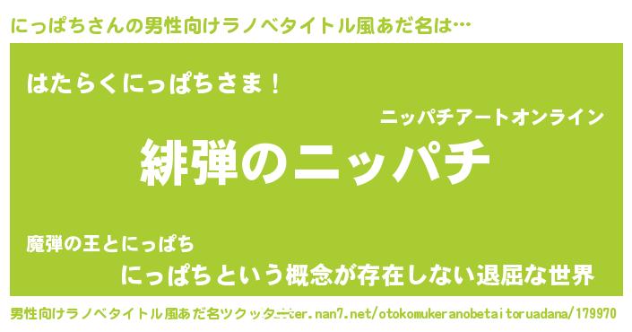 | 意味不明あだ名 | 『永久保存にっぱち』『ペロリンにっぱち』 |