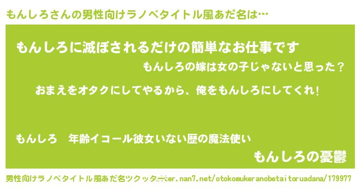 | 女子向けラノベタイトル風あだ名 | 『もんしろ夫妻のなれそめ』 |