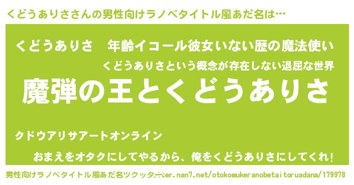 | 意味不明あだ名 | 『住所不定無職くどうありさ(1歳)』 |