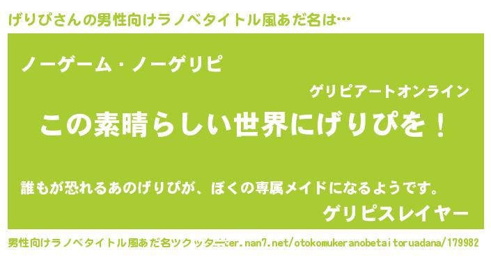 | 意味不明あだ名 | 『住所不定無職げりぴ(71歳)』 |