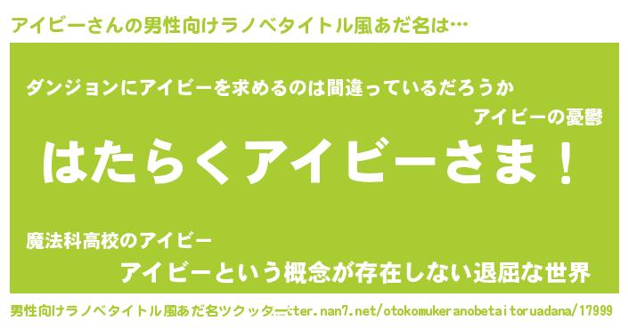| ヘコむあだ名 | 『アイぷりん』『アイビー(笑)』 |