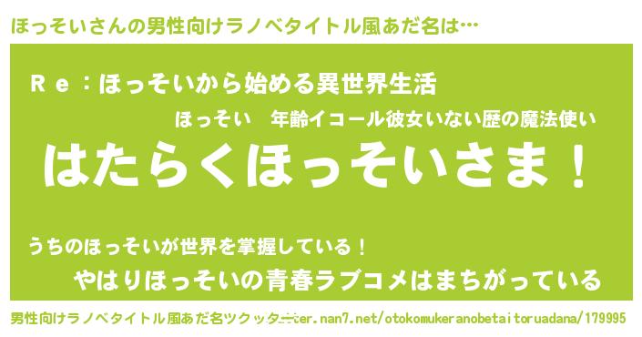 | ファンタジー風あだ名 | 『ゼホットゥ』『エターナルホッソイー』 |