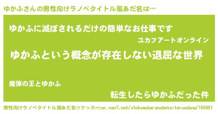 | 胡散臭い通販商品みたいなあだ名 | 『絶対に幸福をもたらす健康食品…その名も「ゆかふ」』 |
