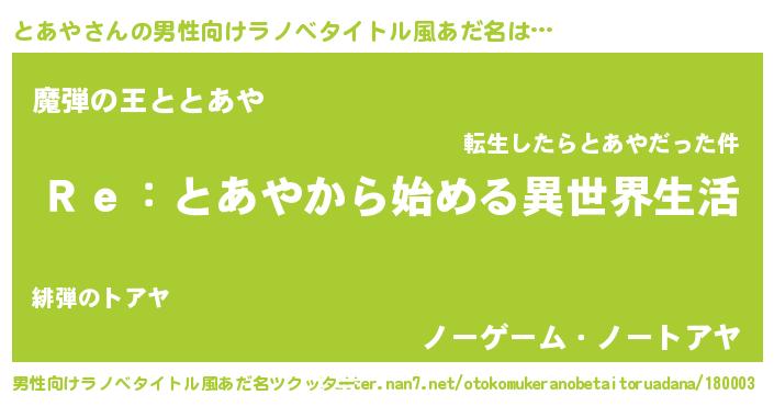 | 女子向けラノベタイトル風あだ名 | 『とあやストレイドッグス』 |
