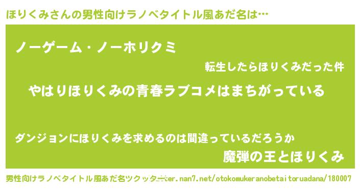 | 女子向けラノベタイトル風あだ名 | 『ほりくみ伯爵の花嫁』 |