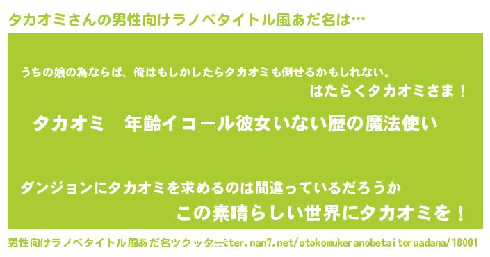 | 欧米人風あだ名 | 『トリンドルタカオミ』 |