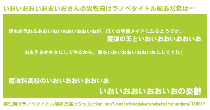 いおいおおいおおいおさんの男性向けラノベタイトル風あだ名をツクッター!