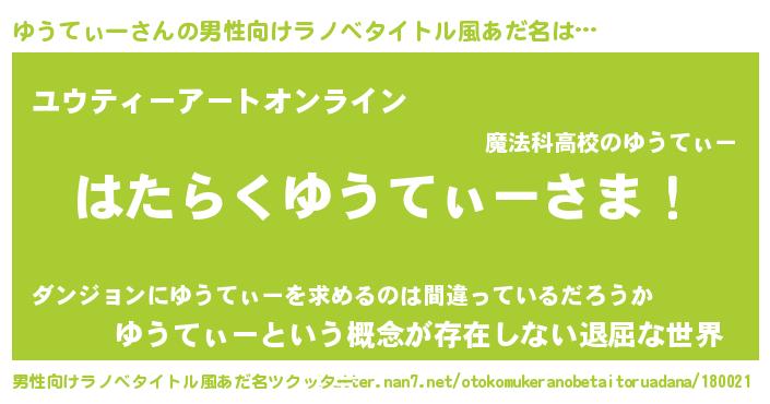 ゆうてぃーさんの男性向けラノベタイトル風あだ名をツクッター!